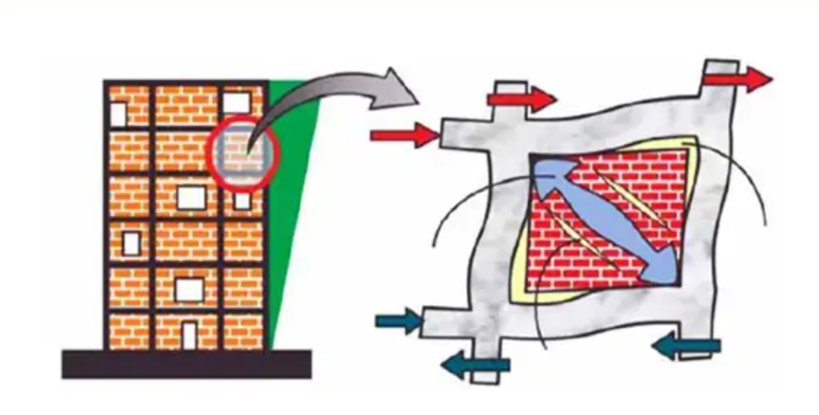 این نیروها میتوانند باعث ایجاد برش و لنگر خمشی اضافی در تیرها و ستونها شوند که در مدل قاب خالص (Bare Frame) پیشبینی نشدهاند. به خصوص در ناحیه اتصال، این نیروها میتوانند منجر به شکست برشی اتصال (Joint Shear Failure) یا شکست برشی در انتهای تیر و ستون شوند.